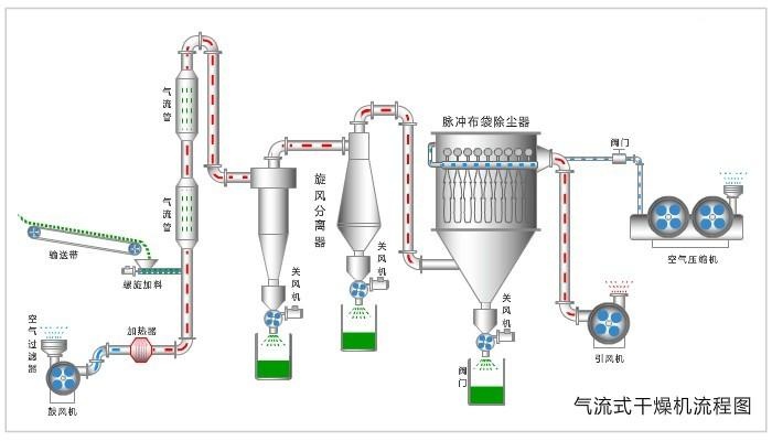 本機(jī)特別適合含濕量比較大的,濕物料呈膏糊狀,用其他氣流干燥方法無法干燥的物料,例如:白碳黑、醋酸乙烯及氯乙烯的共聚物,醋酸纖維絮,催化劑、 C.M.C、 CT—1樹脂、鍛石膏、電解二氧化錳、蒽醌磺酸銨鹽、氟石、硅藻土、硅膠催化劑、骨粉、高領(lǐng)土、過氯酸鉀磺銨類藥物、合成樹脂、活性面筋、活性白土、化學(xué)濾餅、金紅石型鉆白粉、癸二酸、硫酸銅、硫酸鋁、硫酸鈉、磷酸鈣、磷酸酯化淀粉、染料、檸檬酸鈣、煤泥、面圍形的面包加料米糠、粘土、粘土水泥、尿素、膨潤土、球形粘土、氫氧化鋁、氫氧化鋇、乳酸鈣、食品、水洗高領(lǐng)土、三聚氰酸、石膏槳、石灰、生物制品、碳黑、碳酸鈣漿、污泥渣、有機(jī)化學(xué)品硬脂酸鋁、氧化鐵、有機(jī)燃料、玉米蛋白飼料、陰濕泥漿、云母粉、藥劑、顏料、重鉻酸鉀紙漿、酒糟渣等。